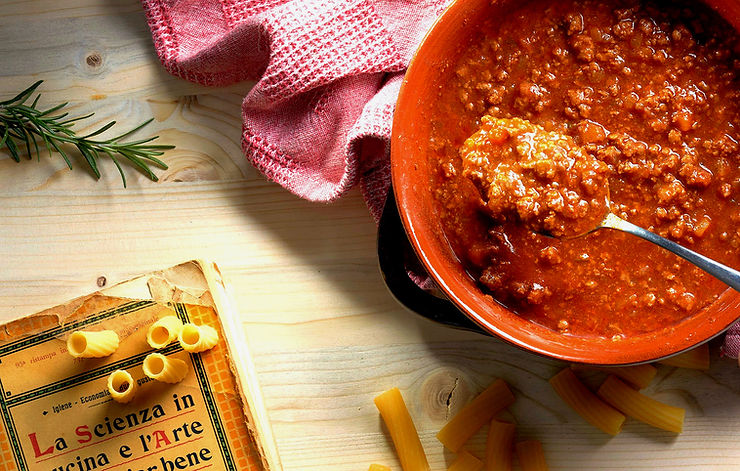 Così Pellegrino Artusi, nel celebre La scienza in cucina e l’arte di mangiar bene. In realtà la versione originaria del ragù alla bolognese dell’Artusi non prevedeva il pomodoro: era un ragù bianco di carne magra, sfumato col brodo, insaporito con della pancetta tesa stagionata (la “carnesecca”) e profumato con sale, pepe e noce moscata.